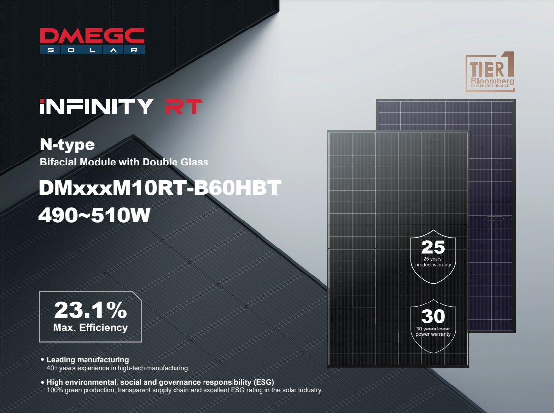 El nuevo panel solar bifacial DMEGC DM500M10RT-B60HBB de 500 W ofrece alto rendimiento y calidad a un precio accesible.